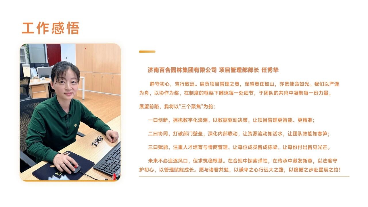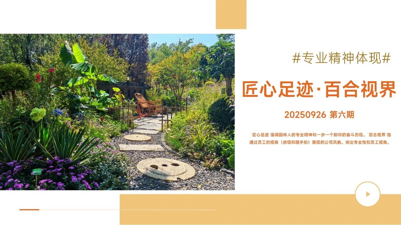 匠心足跡 強調(diào)園林人的專業(yè)精神和一步一個腳印的奮斗歷程。“百合視界“指通過員工的視角(感悟和隨手拍)展現(xiàn)的公司風貌。突出專業(yè)性和員工視角。