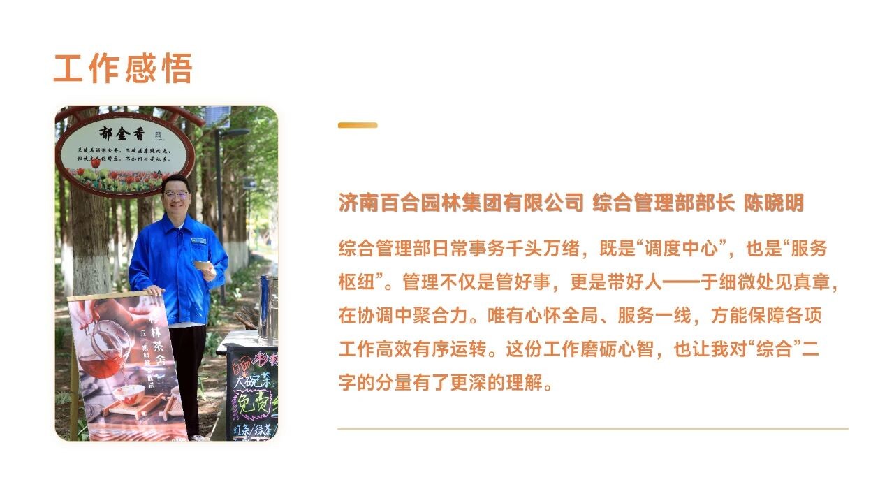匠心足跡 強調園林人的專業(yè)精神和一步一個腳印的奮斗歷程。“百合視界“指通過員工的視角(感悟和隨手拍)展現(xiàn)的公司風貌。突出專業(yè)性和員工視角。